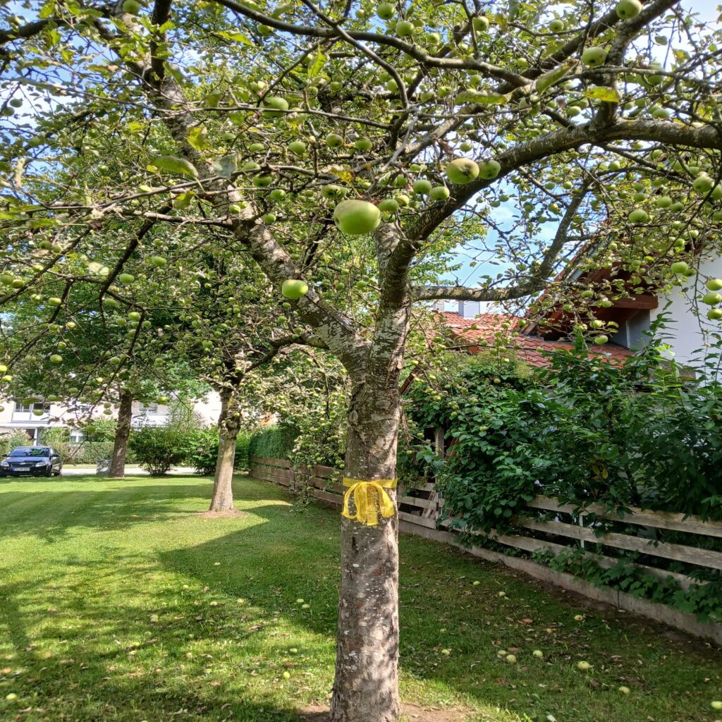 Die Standorte der gemeindlichen Obstbäume mit gelben Band sind: